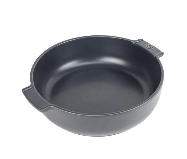 Appolia von Peugeot aus Keramik, erhältlich in den Größen 27 cm und 34 cm (Durchmesser inklusive Griffe). Kompakt und zeitlos – diese schieferfarbene Auflaufform bringt Sie in den Genuss der Vorteile der Ofenzubereitung.