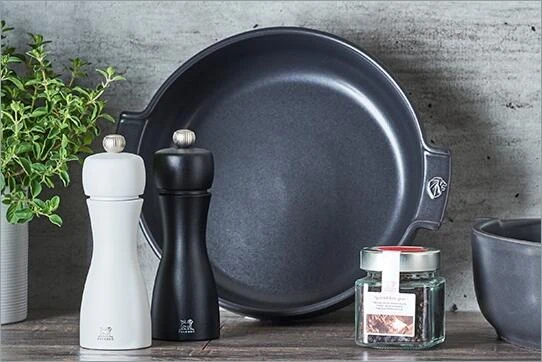 Keramik ist der edle Werkstoff par Excellence für eine gesunde, schmackhafte Ernährung. Im Zusammenspiel mit der satinierten, schieferfarbenen Tönung wird Ihr Gaumen- auch zum Augenschmaus. Die Wärmeträgheit der Werkstoffe der Appolia-Keramik von Peugeot hält Speisen auch noch 30 Minuten nach dem Garen im Ofen warm.