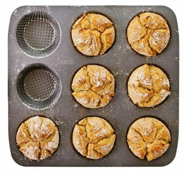 Herrlich duftende, krosse Brötchen, die frisch aus dem Ofen geholt sind und noch lauwarm am Frühstückstisch serviert werden. Das Brötchenblech von Birkmann macht’s möglich! Mit dem Backblech können bis zu 9 selbstgemachte Brötchen gebacken werden. Dank der Antihaftbeschichtung und der Lochungen lassen sich die Brötchen nach dem Backen leicht lösen – ein wenig Einmehlen genügt.