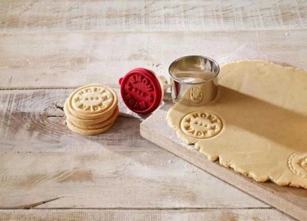 Dieser Desserring hat mit einem Durchmesser von 8 cm genau die richtige Größe für die Plätzchen-Stempel: Zuerst wird der Teig dick ausgerollt, dann mit dem Dessert- und Speisering ausgestochen und anschließend mit einem Stempel dem Keks eine einzigartige Prägung verliehen. Fertig!