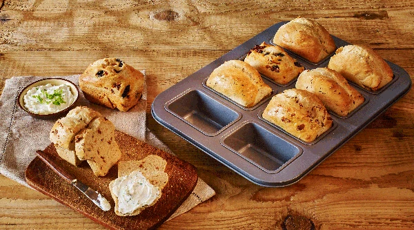 Die Birkmann Mini-Kastenform kann bis zu acht Mal mit Brot- oder Brötchenteig befüllt werden. Die sauerteigbeständige Emaille-Beschichtung sorgt dafür, dass sich das Brot nach dem Backen gut aus der Form lösen lässt.