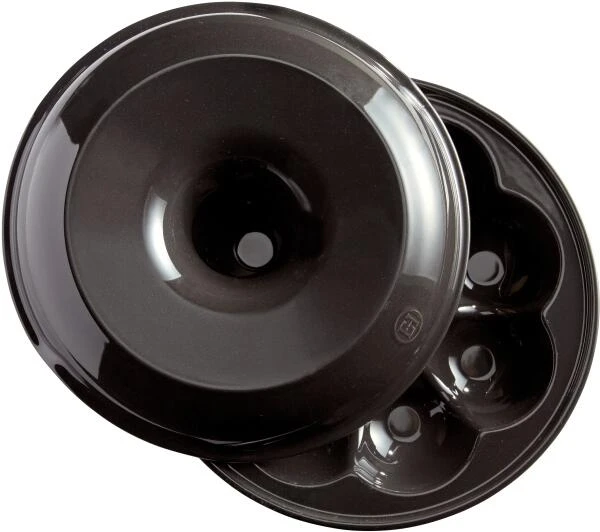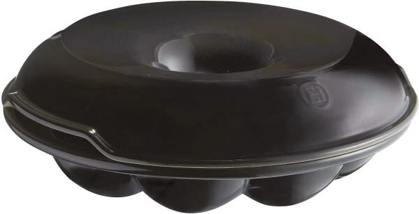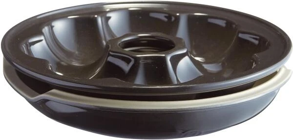Emile Henry Brotkranz-Backform rund in fusain. Die Brotkranz-Backform ermöglicht es, 8 luftige und knackige Brötchen zu backen.