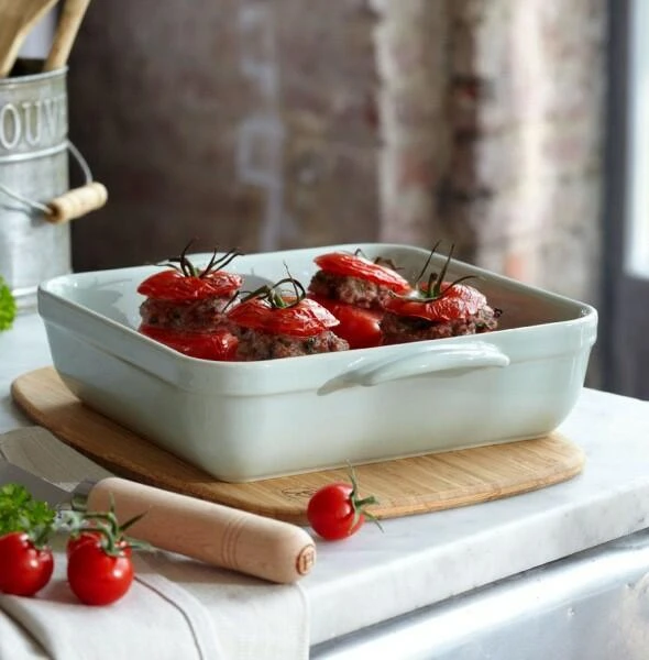 Solide und funktionale Back- und Gratinformen, Schüsseln, Essgeschirr und Küchenaccessoires in eher traditionellem, aber elegantem Design. Formen aus hoch-resistenter Ofen-Keramik von Emile Henry.