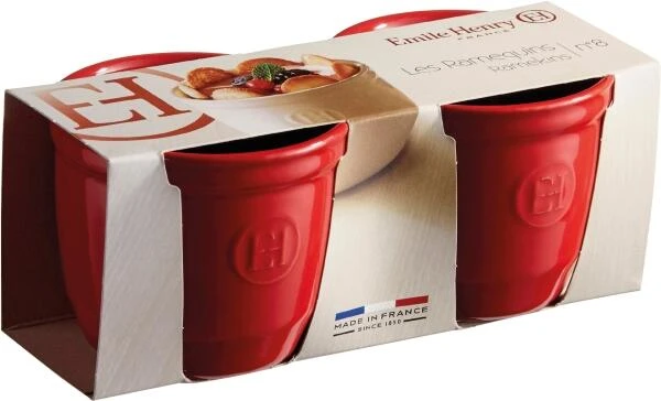 Emile Henry Töpfchen Nr. 8 in granatapfel, 2er Set. Besonders hohe Töpfchen für die Zubereitung für Soufflés, Panna Cotta oder Muffins.