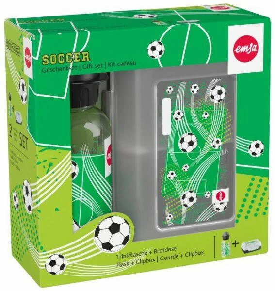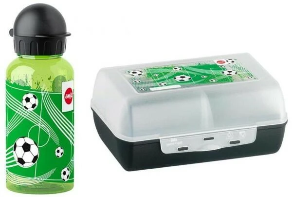 Emsa Kids Trinkflasche und Brotdose Fußball, 2-teilig. Das Set besteht aus einer praktischen Brotdose und 0,4 Liter Trinkflasche.