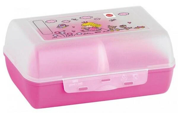 Neben der 0,4 Liter Trinkflasche enthält das Set noch eine Brotdose. Die aus Kunststoff bestehende Brotdose mit eingearbeiteten, kindgerechten Dekor und herausnehmbarer Trennwand lässt sich beidseitig öffnen und kann leicht ineinander gestapelt werden. Zusätzlich hält die Dose jeder Spülmaschine stand. Einer farbenfrohen und abwechslungsreichen Pause steht mit dieser Brotdose somit nichts mehr im Wege.