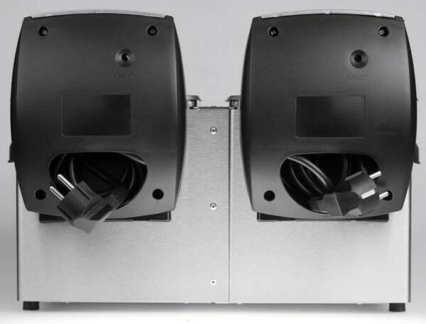 Die doppelte Fritteuse FR 1850 Duo von Fritel ist ideal für eine schnelle Mahlzeit für die Familie oder für ein Familienfest. In den beiden Behältern können zeitgleich z.B. Pommes Frites, Kroketten oder Frikadellen zubereitet werden. Durch die doppelten Kaltzonen brennen Reste in der Fritteuse nicht an und sinken auf den Boden. Das Frittieröl bleibt sauber und hält bis zu dreimal länger. Die Fritteuse Fr 1850 Duo lässt sich völlig zerlegen. Innenbehälter, Gehäuse und Antistaubdeckel sind zudem spülmaschinenfest.