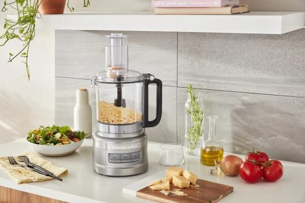 KitchenAid Food-Processor 2,1 L in kontur silber. Food Processor mit dicht schließendem Deckel und extra Kühlbehälterdeckel, 3 Geschwindigkeitsstufen sowie vielseitig verwendbarem Zubehör inklusive Schneebesen.