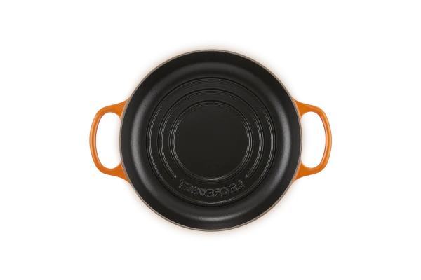 Die Serie Signature von Le Creuset kombiniert neue mit bewährten Produkteigenschaften. Die Signature Produkte verfügen über eine speziell entwickelte strapazierfähige Innen-Emaille, die nicht an Glanz und Farbe verliert und zudem eine hohe Widerstandskraft gegen Abnutzung aufweist. Der Signature Edelstahl Knauf besticht nicht nur durch sein formschönes Design, sondern auch durch seine Hitzebeständigkeit – so ermöglicht er einfaches Anheben des Deckels auch bei hoher Erhitzung im Ofen. Gleiches gilt für die Griffe: Sie sind extra groß und griffig, für ein sicheres Bedienen des heißen, vorgewärmten Bodens. Durch die mattschwarze Innenemaille wird der Brot Bräter besonders vor dem beim Backen verwendeten Ölen und Mehlen geschützt. Zudem ist er sehr leicht zu reinigen. Die erhobenen Ringe sorgen dafür, dass sich das Brot leicht vom Boden löst und die Verwendung von Backpapier nicht nötig ist. Ebenso bewirken sie eine gleichmäßige Bräunung. Das moderne, frische Aussehen von Signature wird mit dem