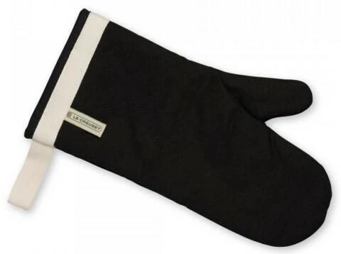 Le Creuset Ofenhandschuh in schwarz glänzend. Besonders hitzebeständiger Ofenhandschuh mit praktischer Öse zum Aufhängen.