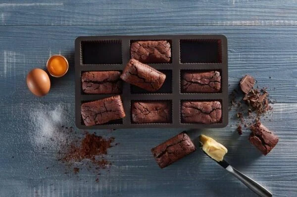 Lurch Flexiform Brownie-Backform. Die Lurch Backform mit 9 Kammern für saftige Brownies oder knusprige Brötchen. Backen in Perfektion – Lurch Backformen sind aus 100% flexiblem Platin-Silikon für beste Backergebnisse.