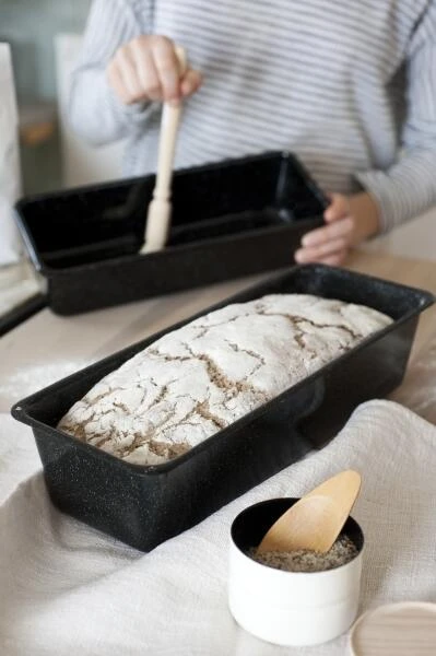 Riess Kuchenform aus Emaille in schwarz. In 2 Größen erhältlich. Die längliche Backform mit Bördelrand ist ideal für Brot, Kuchen, Pasteten und Parfait. Die Tortenform aus Emaille ist besonders langlebig und mit porenloser Oberfläche besonders glatt.
