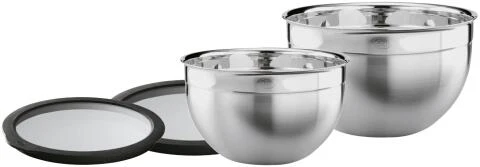 Rösle Schüssel-Set , 2-teilig mit Frischhaltedeckeln aus Glas. Formschöne Schüsseln, die gleichermaßen zum Servieren am Tisch als auch zur Zubereitung und Aufbewahrung von Speisen geeignet sind.