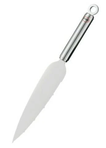 Rösle Tortenmesser. Tortenmesser mit Zahnung von Rösle. Zum Teilen und Verteilen von Kuchen und Torten. Durch die feine Zahnung werden die Stücke glatt geschnitten. Die dreieckige lange Form unterstützt das Abheben der Tortenstücke.