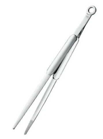 Die Zangen aus Edelstahl von Rösle machen die ungewöhnlichsten Kniffe einfach und greifen sicher zu. Mit optimierten Zinken, Zacken und Riffelwellen nehmen sich die Zangen zuverlässig die verschiedensten Aufgaben vor. Stabile Verarbeitung und griffsichere Elastizität gehen dabei Hand in Hand. Das gradlinige und fugenlose Design garantiert die einfache und rückstandsfreie Reinigung der Werkzeuge. Und dank des praktischen Aufhängerings ist auch hinterher alles in bester Ordnung. Die Verwendung von Edelstahl 18/10 garantiert Geschmacks- und Geruchsneutralität und eine nahezu unbegrenzte Lebensdauer.