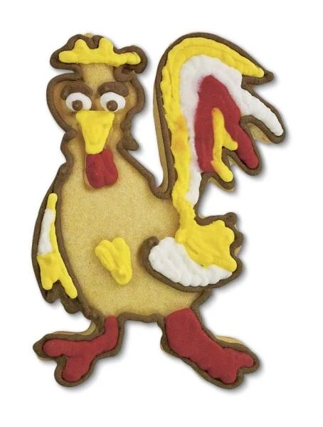 Mit diesem Präge-Ausstecher können Sie im Handumdrehen einen stolzen Gockel formen – komplett mit Krallen, Flügeln, Schnabel, Augen, Kamm und Hahnenfedern.