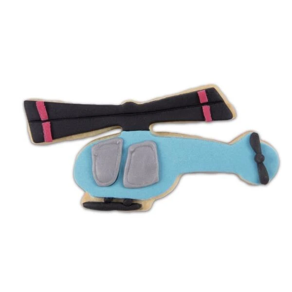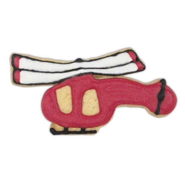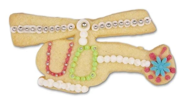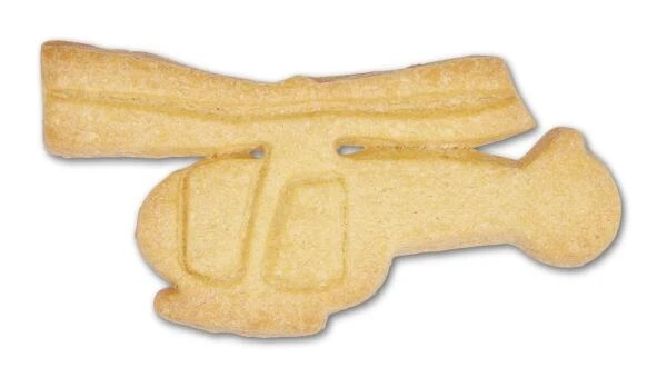Wie wäre es mit einem leckeren Hubschrauber zum Anknabbern? Mit unserem Ausstecher backen Sie kleine Helikopter mit Rotorblatt, Heckrotor und Pilotenkanzel.