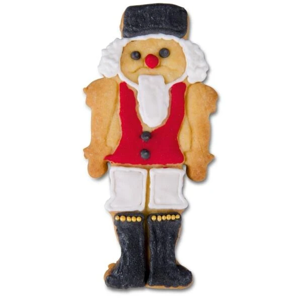 Nussknacker gehören zur Weihnachtsdekoration einfach dazu. Dieser Ausstecher hat ein vorgeprägtes Nussknacker-Gesicht und prägt Bart, Weste, Hose und Stiefel. Und natürlich einen Hut!