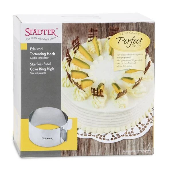 Für sehr hohe Torten empfehlen wird diesen verstellbaren Tortenring.