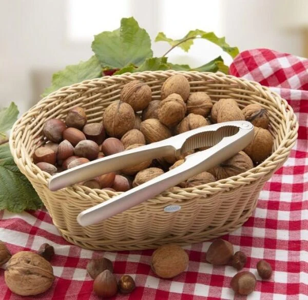 Mit der Nussknacker-Zange aus stabilem Zinkdruckguss können Sie Hasel-, Para-, Macadamia-, Walnüsse sowie Mandeln einfach knacken. Mit seinem zeitlosen, schichten Design und der edelmattierten Beschichtung ist der Nussknacker Elegante ein ideales Geschenk für Freunde des guten (Nuss-) Geschmacks.