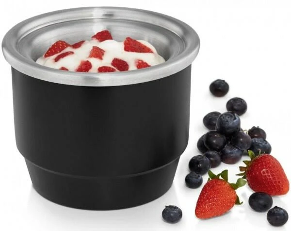 Mit dieser platzsparenden Eismaschine zaubert man im Handumdrehen leckeres Eis, aber auch Sorbet, Frozen Yoghurt und andere tiefgekühlte Süßspeisen. Das edle Design aus hochwertigem Chromargan macht die Eismaschine zu einem echten Hingucker in der Küche und der spülmaschinengeeignete Gefrierbehälter ist sowohl für die Zubereitung als auch zur Aufbewahrung im Gefrierschrank geeignet.
